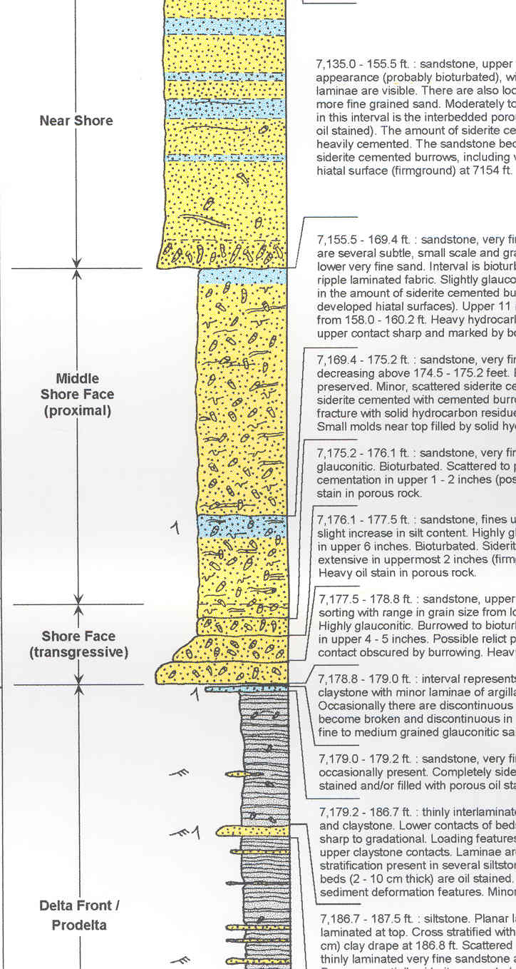| Detailed description of whole core produces a vertical sequence of facies that can be placed into a depositional setting. This data is useful in reservoir modeling and exploitation applications providing information on flow units and identification of sequence boundaries and flooding surfaces. |